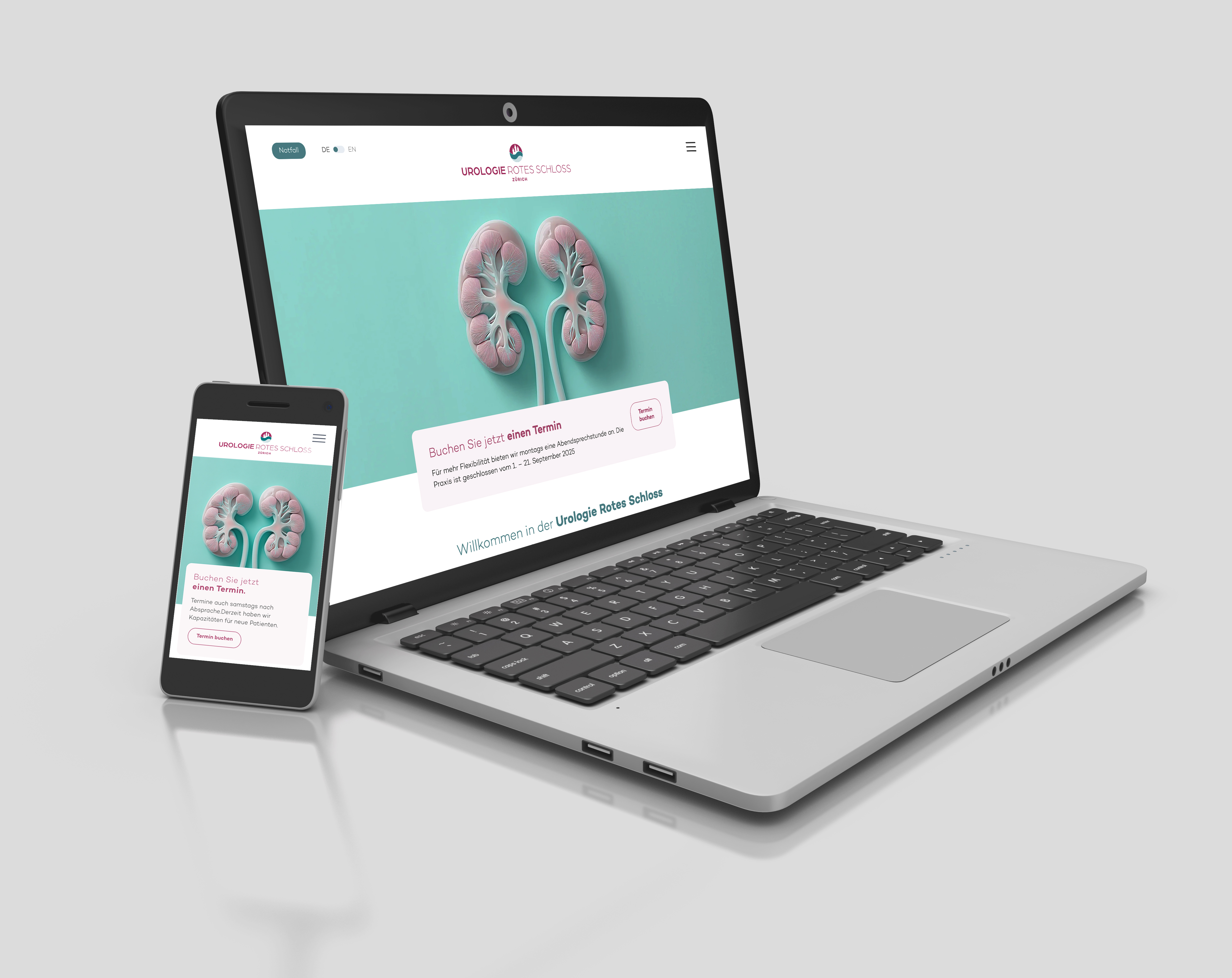 Yuni hat für die Praxis Urologie Rotes Schloss in Zürich das komplette Erscheinungsbild modernisiert: Wir haben das Logo frisch gestaltet und die Website umfassend neu konzipiert, gestaltet und relauncht. Dabei lag unser Fokus auf einem klaren, modernen Design, das Vertrauen schafft und die Kompetenz der Praxis widerspiegelt.
